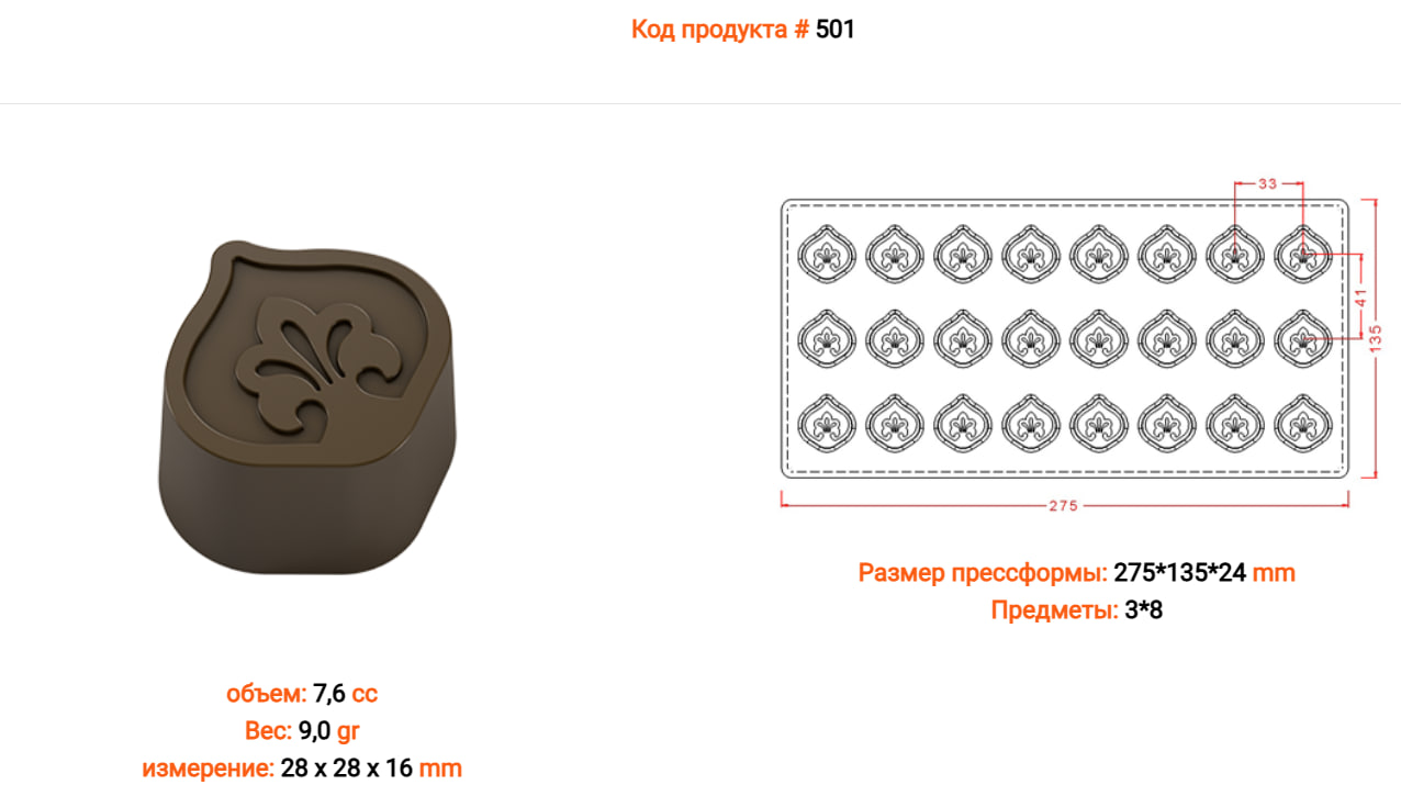 Поликарбонатная форма для шоколада №501