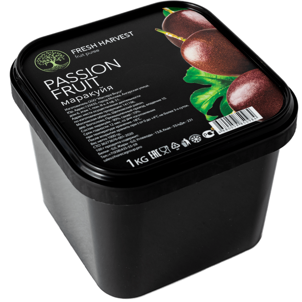 Вкусное ароматное пюре маракуйи отлично дополнит любой десерт, имеет гладкую и однородную структуру, полностью натурально и безопасно, не содержит вредных добавок, красителей и ароматизаторов, поэтому может применяться для изготовления десертов для любого возраста.